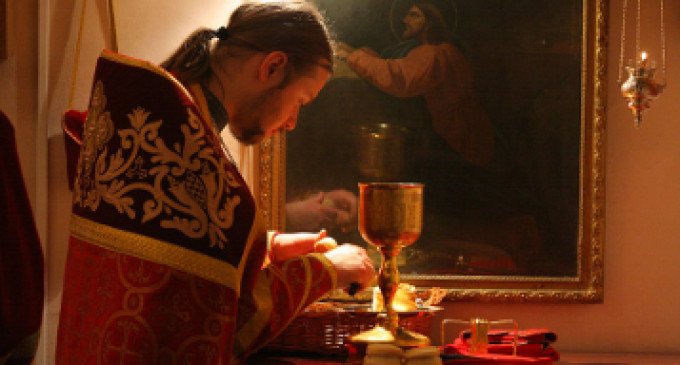 На ней не только приготавливаются будущее Тело Христово (Агнец — большая просфора) и будущая Кровь Христова для Таинства (вино), но и читается молитва за христиан — живых или умерших. За Матерь Божию, святых и нас, простых верующих, вынимаются частички из просфорок. Обратите внимание, когда вам дают маленькую просфорку после Причастия — из нее как будто «кто-то выковырял кусочек». Это священник вынимает частицы из просфор за каждое имя, написанное в записке «на проскомидию».