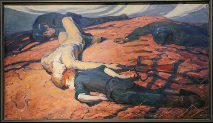 Некоторые исследователи отмечают в картине советского художника Федора Богородского «Слава павшим героям» параллели с подвигом Христа. Тема спасения мира ценой собственной жизни удивительным образом переплетается с евангельскими событиями.