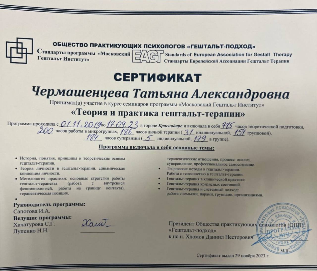 ЧЕРМАШЕНЦЕВА Татьяна, психолог