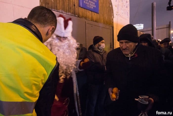 Вчера была среда. Как всегда по средам, вот уже много лет на Павелецкий вокзал приезжает машина "Справедливой помощи" доктора Елизаветы Петровны Глинки. И вчера машина тоже приехала, волонтеры и сотрудники так же кормили бездомных и нуждающихся, так же оказывали медицинскую помощь. По давно сложившейся традиции в последнюю среду перед Новым годом раздавались мандарины.