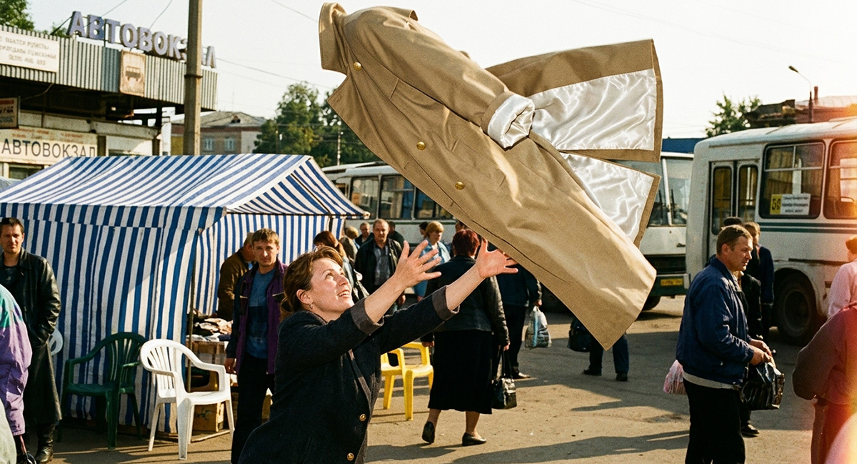 А какие карманы — бездонные! В их квадратных глубинах транзитом путешествовали то разноцветные купюры (иногда пачками), то горсти увесистых монет, то извещения на крохотные алименты. Бывало, гнездились в карманах огромные суммы денег. Это когда тотально перестали платить зарплату и даже детское пособие. Мне пришлось торговать на рынке женской одеждой. Хозяйка лотка приезжала за выручкой раз в неделю, так что карманы плаща временно заменяли сейф.