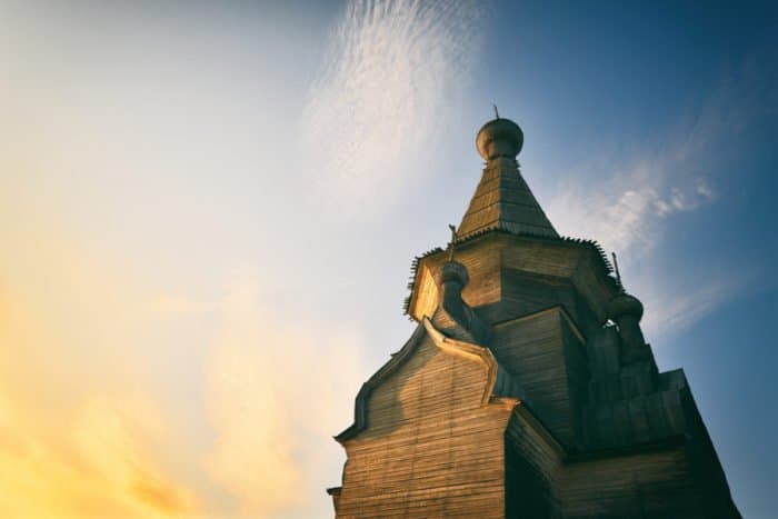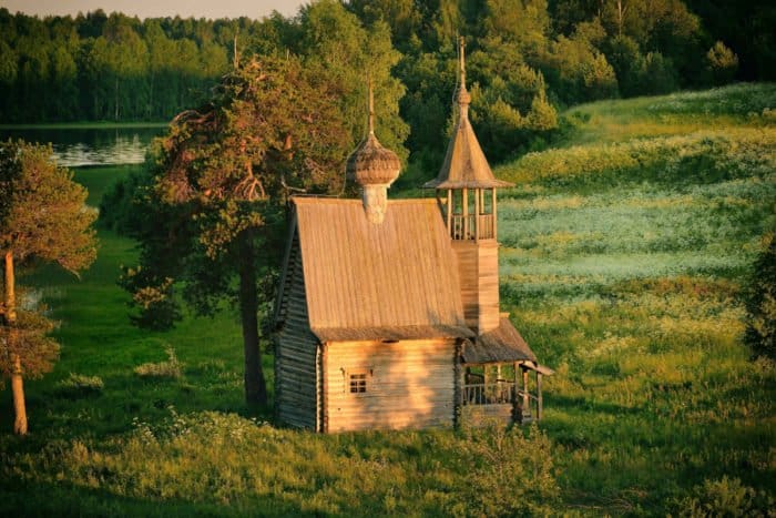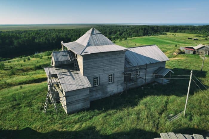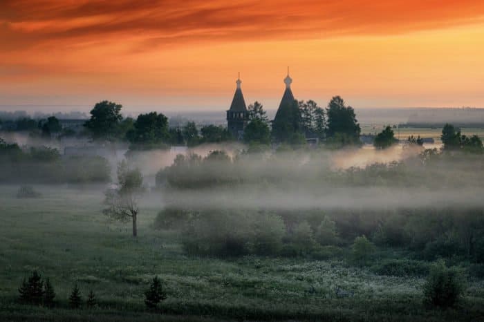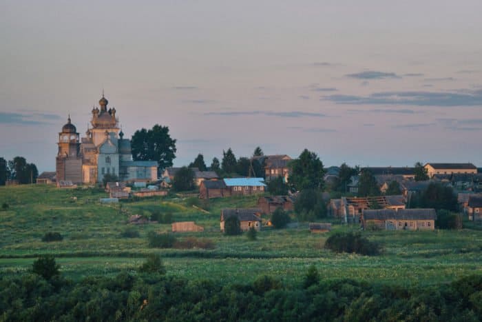 Красная Ляга. Сретено-Михайловская церковь белой ночью