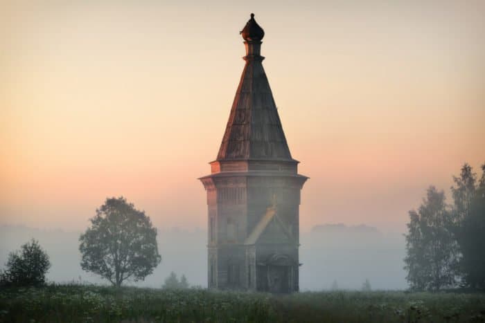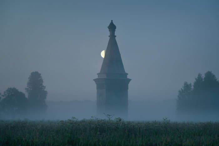 Солнце уже больше часа как скрылось за горизонтом, но обагряло небеса, уступая ненадолго своей подруге - белой ночи. Стелился туман. С одной из сторон монастыря раскинулось поле, за которым стояла стена глухого леса. В обе стороны уводила вдаль лента старой грунтовой дороги. С другой стороны маленькая речушка что-то сонно бормотала себе под нос, безуспешно пытаясь взять пример с уже заснувшей по соседству деревеньки. Над этим безмолвием кружили чайки да вторили свои печальные песни о Белом море