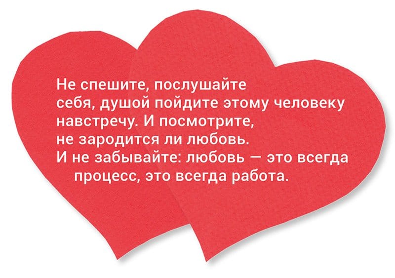 Но однозначно, первый шаг, который можно сделать и без психотерапевтов, — это очень четко и честно обратиться к себе с вопросами: что именно я считаю настоящей любовью? Что я хочу от брака?