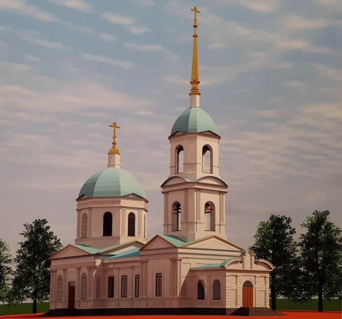 Храм восстанавливается в историческом облике. Сейчас готов его подкупольный барабан, а монтаж купола планируется в середине августа.