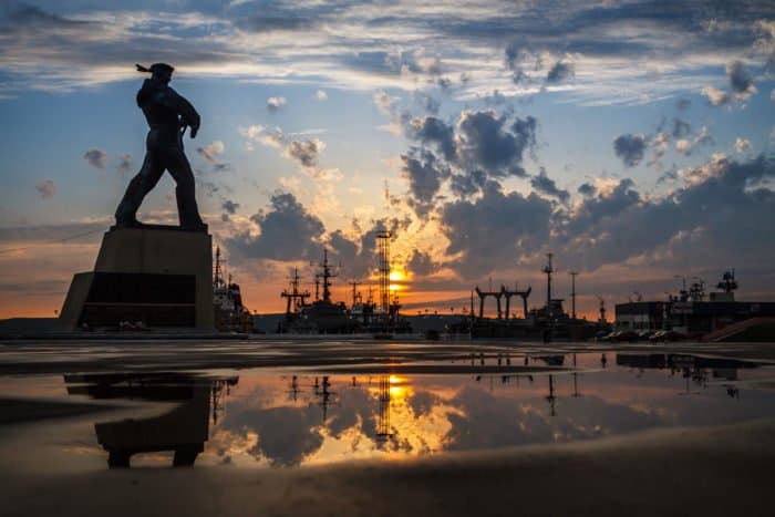 На Приморской площади города, продуваемой холодными ветрами Баренцева моря, возвышается почти на 30 метров фигура моряцкого «Алеши». Матрос с автоматом будто шагает с постамента — рубки подводной лодки — в сторону моря, к пришвартованным у причалов крейсерам и эсминцам. «Алеша» — любимый всем городом памятник героям-североморцам времен Великой Отечественной войны, символ столицы Северного флота России. Площадь вокруг него — место проведения военных парадов и прогулок горожан, которым не страшны пронизывающие ветра.