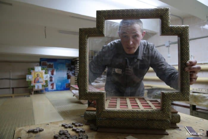 Девять лет назад несколько заключенных пришли ко мне с инициативой «делать что-то своими руками». Так возник наш православный трудовой реабилитационный центр, сокращенно ПТРЦ. Нам дали сначала одно помещение, которое мы отремонтировали, потом еще несколько. Так из небольшого количества стамесок и желания работать организовалась большая столярная мастерская с программируемыми ЗD-станками. Наши изделия выигрывают на разных конкурсах — в основном это резные иконы и оклады. В последнее время у нас даже заказывают целые иконостасы.
