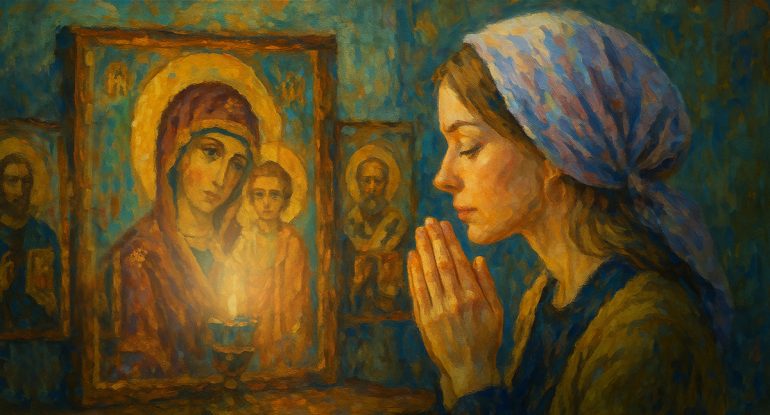 Казанская икона — редкий пример образа, который одинаково органично чувствует себя и на парадном молебне, и в кухне коммуналки. В ней уживаются торжественность и простота, молитва за страну и воздыхание за родных и близких.