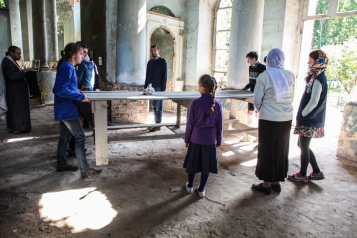 75 добровольцев совместно с местными жителями с. Аксиньино в течение 7 дней участвовали в уборке интерьеров храма и благоустройстве храмовой территории.
