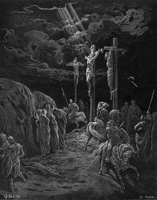 «Галерея Доре», открытая в 1867 в Лондоне издателями Фейрласом и Бифортом, привлекала внимание публики. Поэтому однажды владельцы галереи заказали Доре сделать большое полотно по одной из гравюр Библии. Доре с удовольствием согласился и сделал их несколько, ведь англичане признали в нем живописца. Правда говорят, что французы потом шутили, мол, «это же только огромные иллюстрации», на что слышали от англичан в ответ: «ну и что?!»