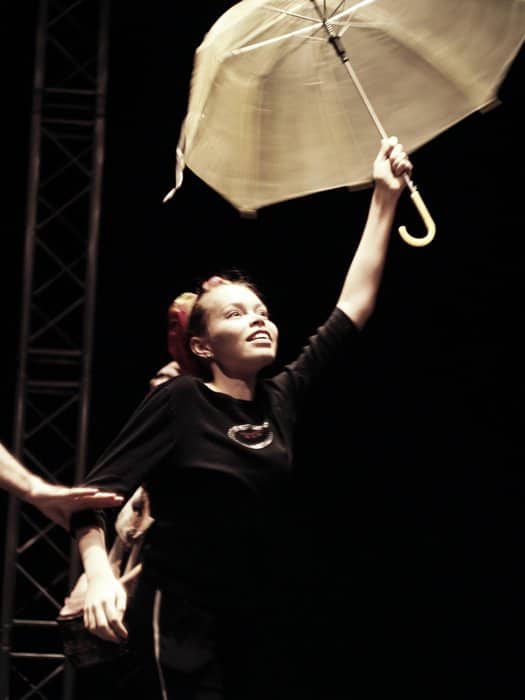 Необыкновенно пластичная артистка с нарушением опорно-двигательного аппарата.