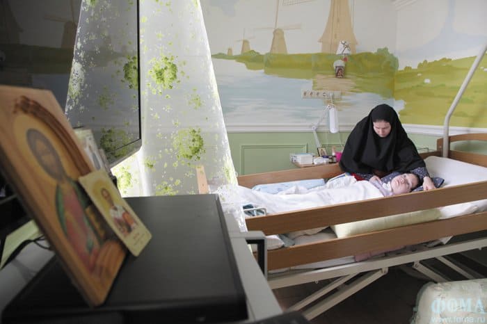 На базе этого центра при обители открыта выездная паллиативная служба. Ее сотрудники — врачи, медсестры, соцработники — опекают примерно семьдесят семей. Кроме медицинской поддержки, служба помогает родителям с оформлением льгот, о которых те могут даже не знать. Добровольцы службы помогают мамам в быту.