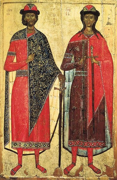На иконах их принято изображать вместе. Ведь Борис и Глеб были не только единокровными братьями, но и единоутробными, рожденными пятой женой князя Владимира, Анной, болгаркой по происхождению. Вместе они объявили о верности новому князю Киева, которым после внезапной и неожиданной смерти князя Владимира стал Святополк, самовольно занявший киевский престол. Вместе поклялись чтить Святополка «как отца своего». За свое происхождение, за духовную близость князю Владимиру (они как и их отец стали верными христианами), за претензии на княжеский престол вместе приняли смерть, пусть и находились в разных местах. 24 июля 1015 года Бориса был заколот копьями на реке Альте, где по повелению князя Владимира со своим отрядом отражал нападение печенегов. Глеб, совсем еще юный, 5 сентября 1015 года был зарезан собственным поваром недалеко от Смоленска. И Борис и Глеб, в жизни отличавшиеся милосердием и сердечной добротой, воспитывавшиеся в благочестии, даже смерть приняли с христианским смирением и молитвой на устах. Отставленный дружиной Борис, долго молился в своем шатре. Увидя, как к нему поступают подосланные убийцы, произнес: «Подходите, братия, кончите службу свою, и да будет мир брату Святополку и вам». Святой благоверный князь Глеб, зная о смерти отца, об убийстве брата, о вероломном захвате киевского престола Святополком, предпочел не сопротивляться и принять смерть, чем совершить братоубийство и месть. Обоих братьев, и Бориса и Глеба, мы почитаем святыми страстотерпцами за совершённый ими подвиг братской любви, христианского смирения и послушания. Как пишет Нестор летописец: «Видите, братия, как высока покорность старшему брату? ... Много ныне юных князей, которые не покоряются старшим и за сопротивление им бывают убиваемы. Но они не уподобляются благодати, какой удостоились сии святые».